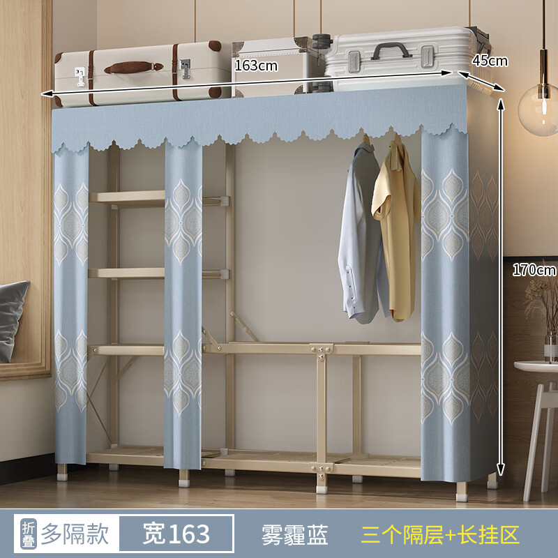 好脉折叠衣柜简易布衣柜家用卧室免安装收纳多格层款 ZD163B 蒂芙尼蓝价格:329.00元!