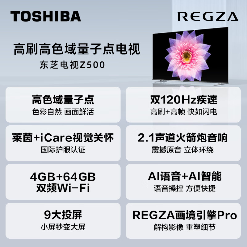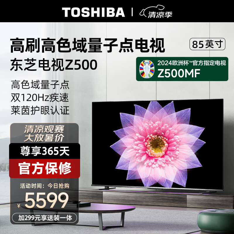 东芝电视85Z500MF 85英寸 欧洲杯120Hz高刷高色域 量子点 4+64GB 4K超清 液晶智能平板电视 排行前十名价格:5599.00元!