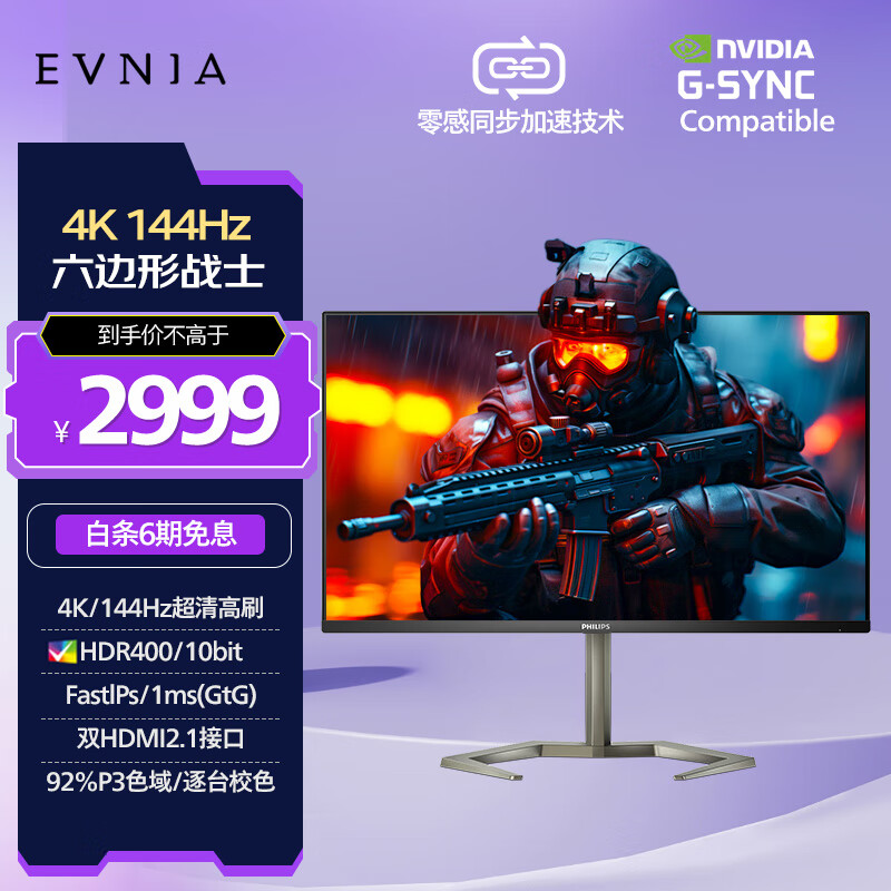 飞利浦31.5英寸 4K144HzFastIPS1ms HDR400出厂校准 G-Sync HDMI2.1电竞显示器 PS5游戏屏 IF奖32M1N5800价格:2999.00元!