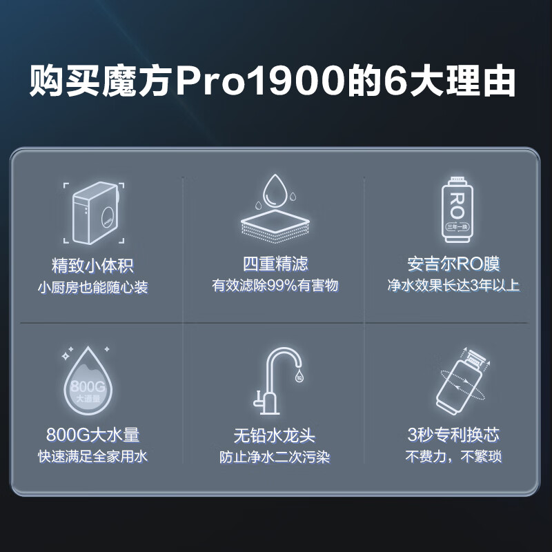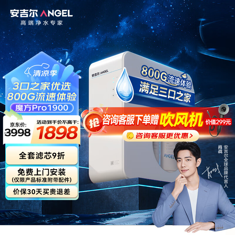 安吉尔【肖战代言】魔方Pro1900 家用净水器800G流速体验 24吨RO反渗透厨下无双酚A纯水直饮1.97L/min价格:1898.00元!