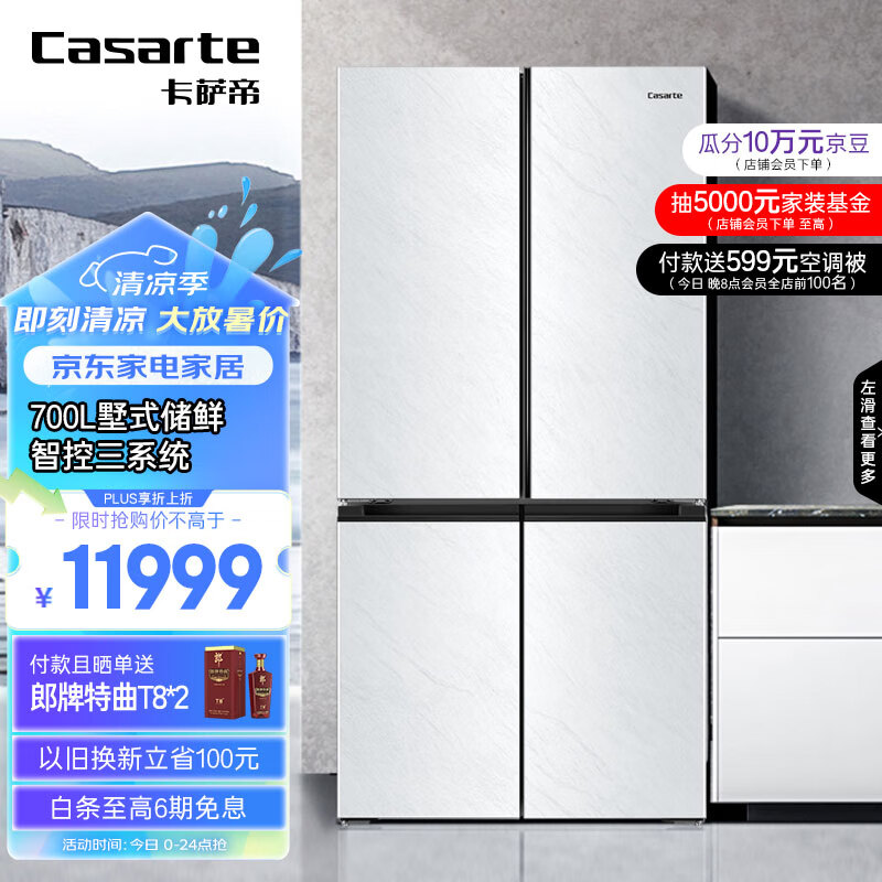 卡萨帝(Casarte)700升原石冰极岩十字四开门双开门白色无霜大容量电冰箱一级能效变频家用BCD-700WGCTDM7WYU1价格:11999.00元!
