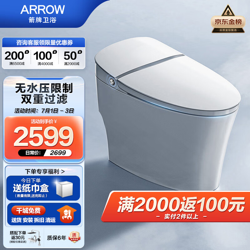 箭牌(ARROW)0水压限制智能马桶虹吸式电动一体机坐便器家用双水路AKE1138M价格:3699.00元!