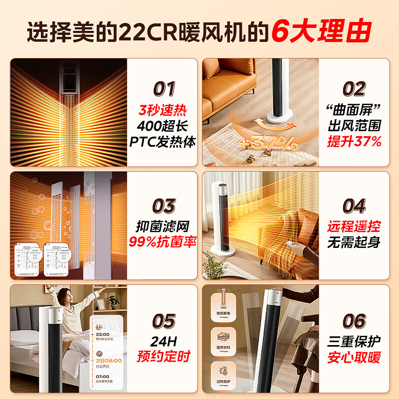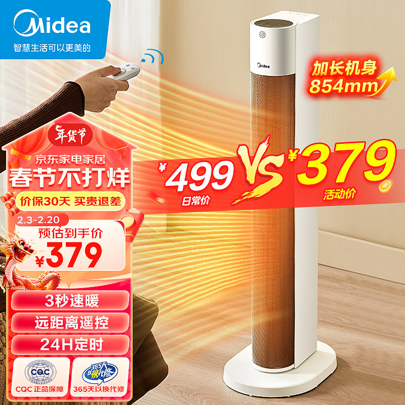美的(Midea)【超级单品】暖风机/取暖器家用/加热风机/电暖器/电暖气/电热风扇大面积立式轻音节能 HFU22CR价格:359.00元!