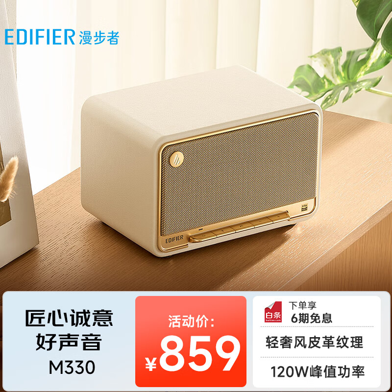 漫步者(EDIFIER)M330 高品质复古蓝牙音箱 一体式大功率音响 家庭音响 桌面音响 户外音响 贝母白价格:859.00元!