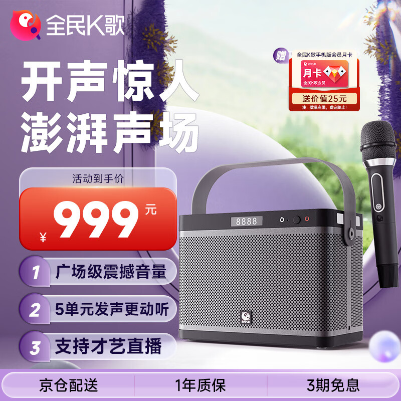 K歌 多功能无线K歌音箱麦克风套装 全能兼容遥控按键方便家用KTV户外娱乐话筒音响一体YH51黑色价格:999.00元!