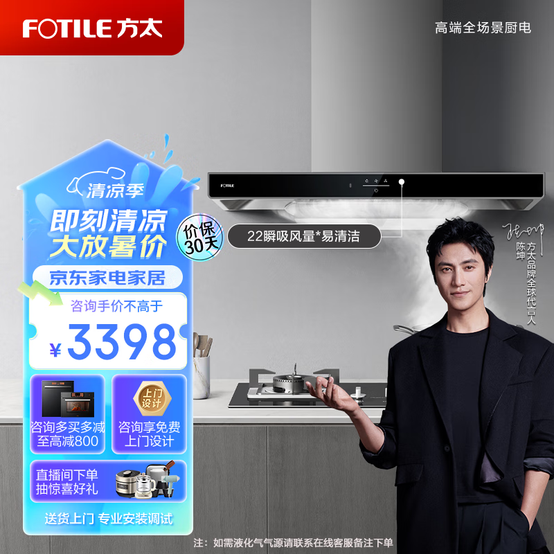 方太抽吸油烟机灶具套装 欧式顶吸排油烟机燃气灶套餐 家用烟机 22瞬吸风量挥手智控EMC5A+TH35B天然气价格:3398.00元!