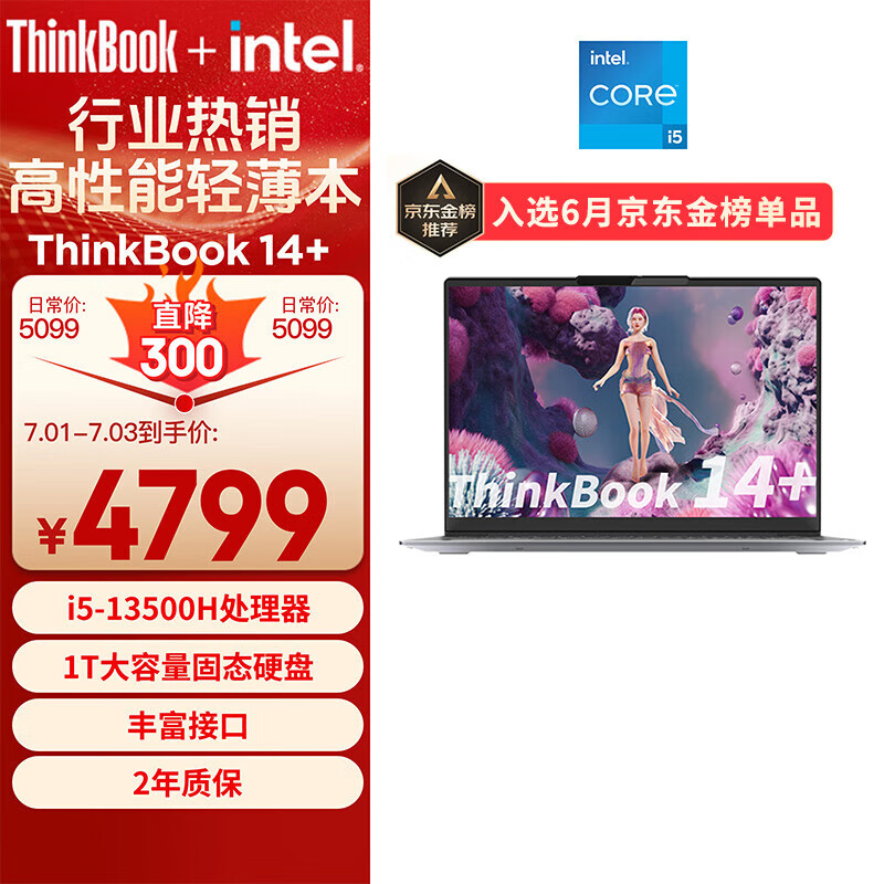 ThinkPad联想笔记本电脑ThinkBook 14+ 英特尔Evo 14英寸轻薄办公本 13代i5-13500H 16G 1T 2.8K 90Hz价格:4799.00元!