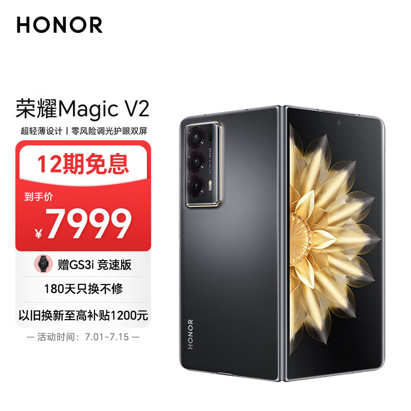 荣耀Magic V2 折叠屏 超轻薄设计 零风险调光护眼双屏 5000mAh青海湖电池 5G AI手机 16+256 绒黑色价格:7999.00元!