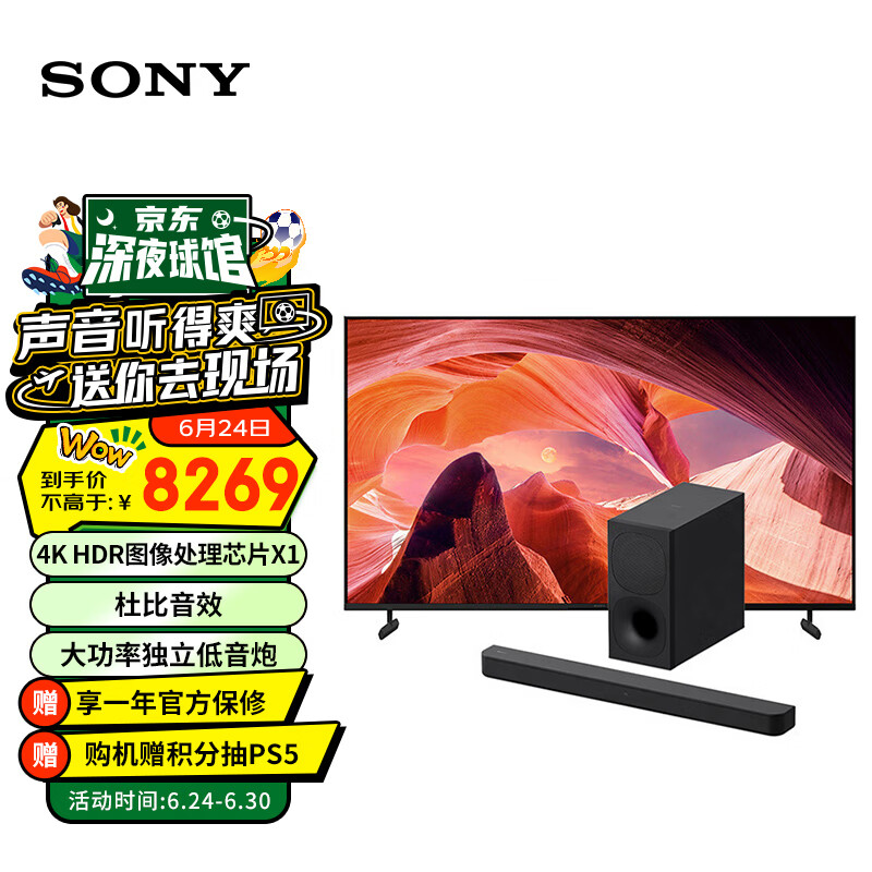 索尼(SONY)KD-75X80L+HT-S400 影音娱乐套装 杜比音效 智能环绕 大功率无线低音炮 家庭影院 回音壁价格:7969.00元!