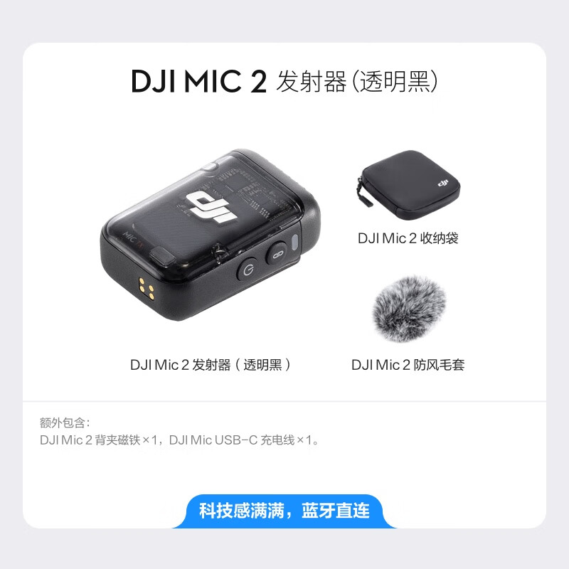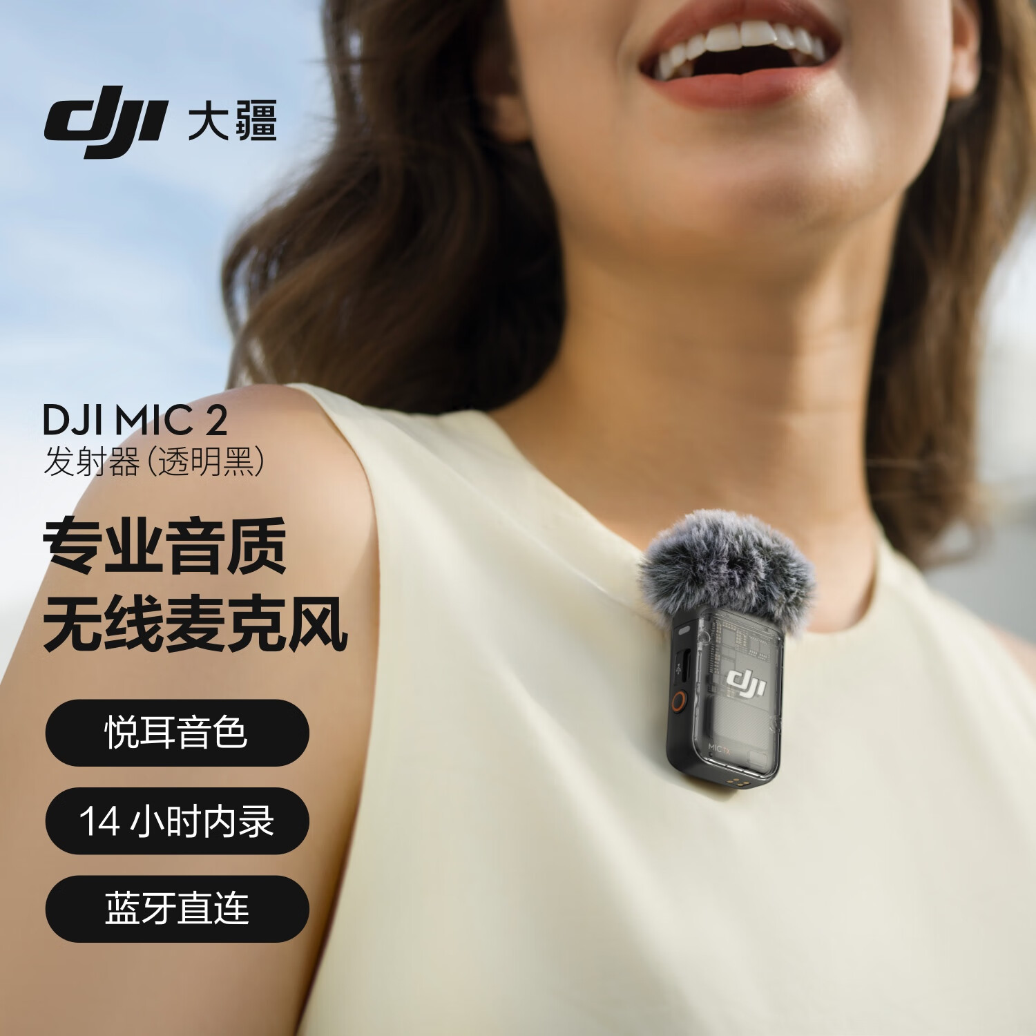 大疆DJI Mic 2 发射器(透明黑)专业音质无线麦克风 智能降噪 蓝牙直连 无损内录价格:699.00元!