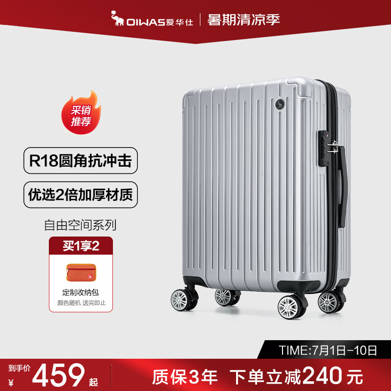 爱华仕行李箱男拉杆箱女大容量旅行箱万向轻便飞机轮28英寸密码箱冰川银价格:699.00元!