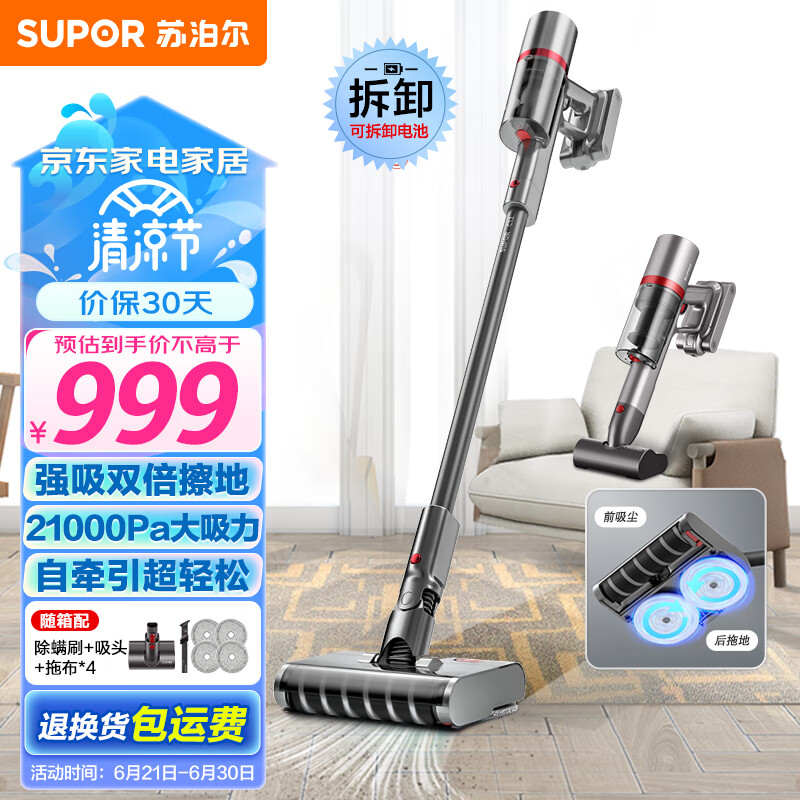 苏泊尔(SUPOR )手持无线吸尘器家用洗地机吸拖一体全自动大吸力拖地机电动拖把宠物家庭适用EVS-C12价格:999.00元!