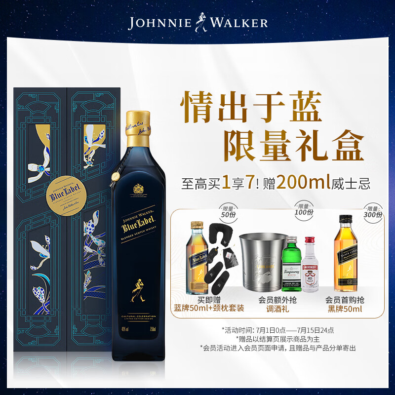 尊尼获加(JOHNNIE WALKER)蓝方蓝牌 情出于蓝送礼礼盒 苏格兰 调和威士忌 洋酒 750ml价格:1528.00元!