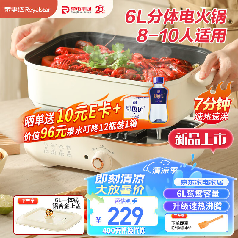 荣事达(Royalstar)电火锅分体式多用途锅电煮锅多功能锅家用电热锅料理涮肉锅火锅锅具6L DZG60E价格:229.00元!