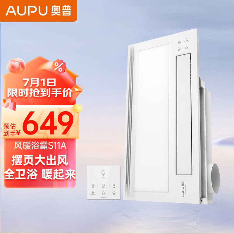 奥普(AUPU)浴霸S11A风暖浴霸 宽摆页出风 强弱风暖 无线遥控 适配集成吊顶价格:899.00元!