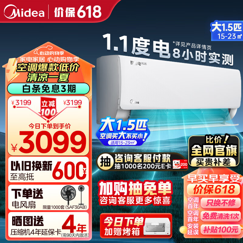 美的(Midea)空调 1.5匹 酷省电新系列 新一级能效变频冷暖 壁挂式空调挂机 智能家电 KFR-35GW/N8KS1-1P价格:3099.00元!