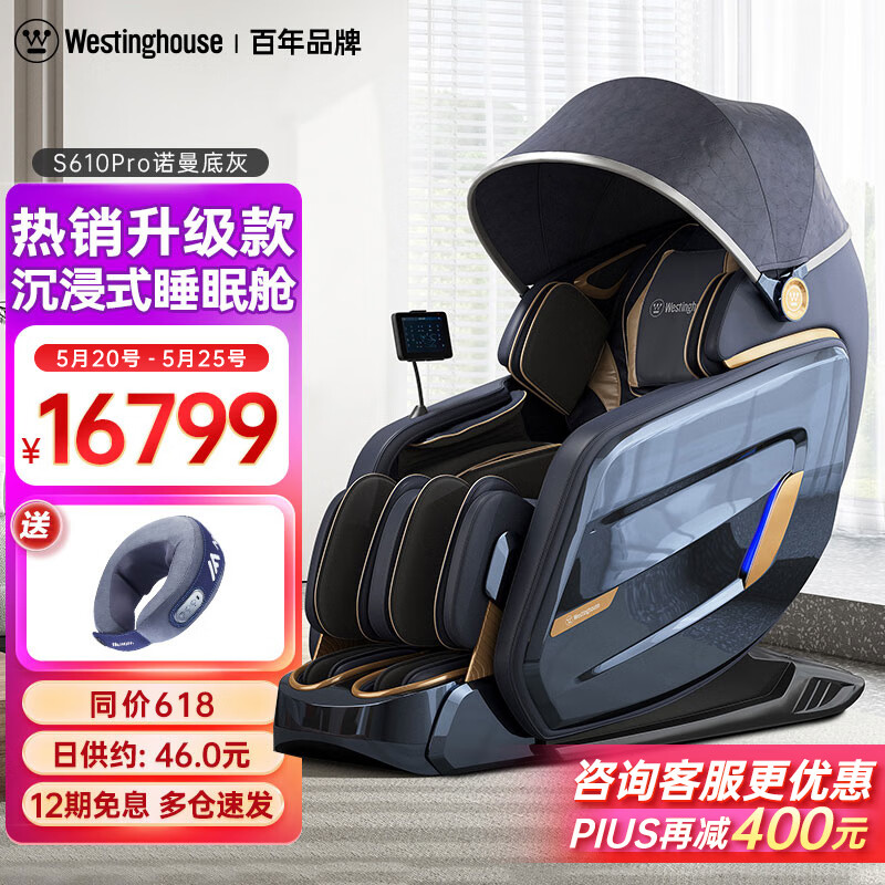 西屋(Westinghouse)S610Pro按摩椅家用按摩椅太空舱2024全身按摩按摩沙发按摩椅颈椎肩颈腰送家人送长辈 诺曼底灰价格:16799.00元!