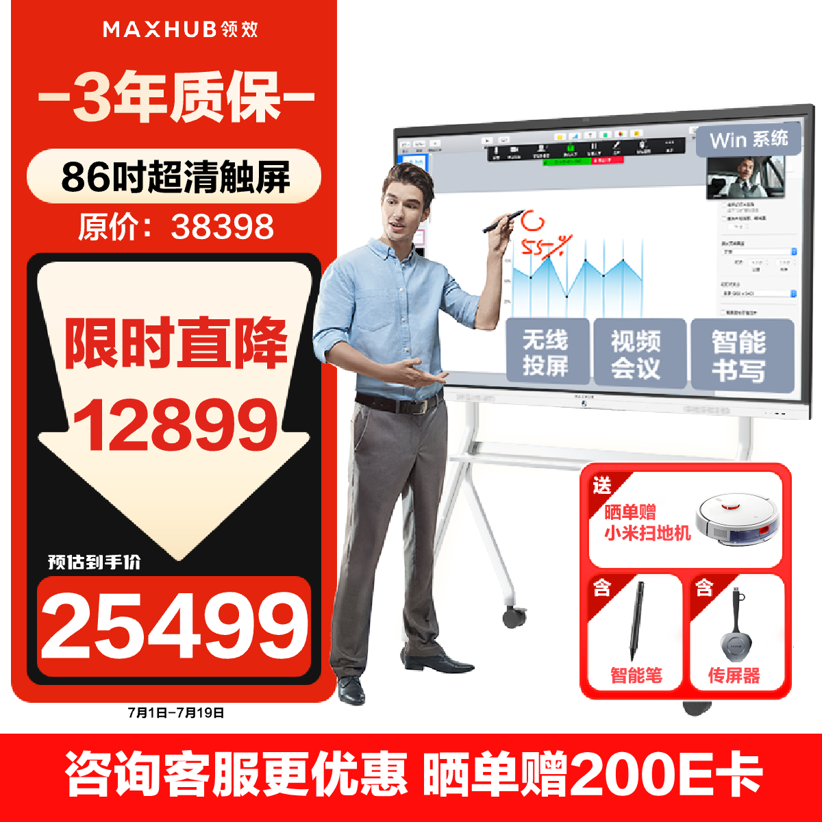 maxhub会议平板新锐Pro86英寸 触摸视频会议电视一体机 投屏电视智慧屏SC86 i5+支架+传屏+笔 商用显示价格:25499.00元!