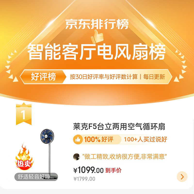 莱克(LEXY) F5智能空气循环扇落地扇家用落地轻音立式电风扇桌面台扇 F5Pro-森羽-升级版(WF42)价格:1799.00元!