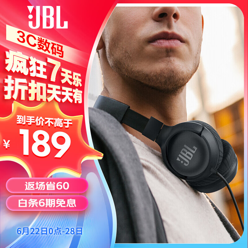 JBL TUNE 500 头戴式有线耳机耳麦 运动耳机+游戏耳机 暗夜黑价格:249.00元!