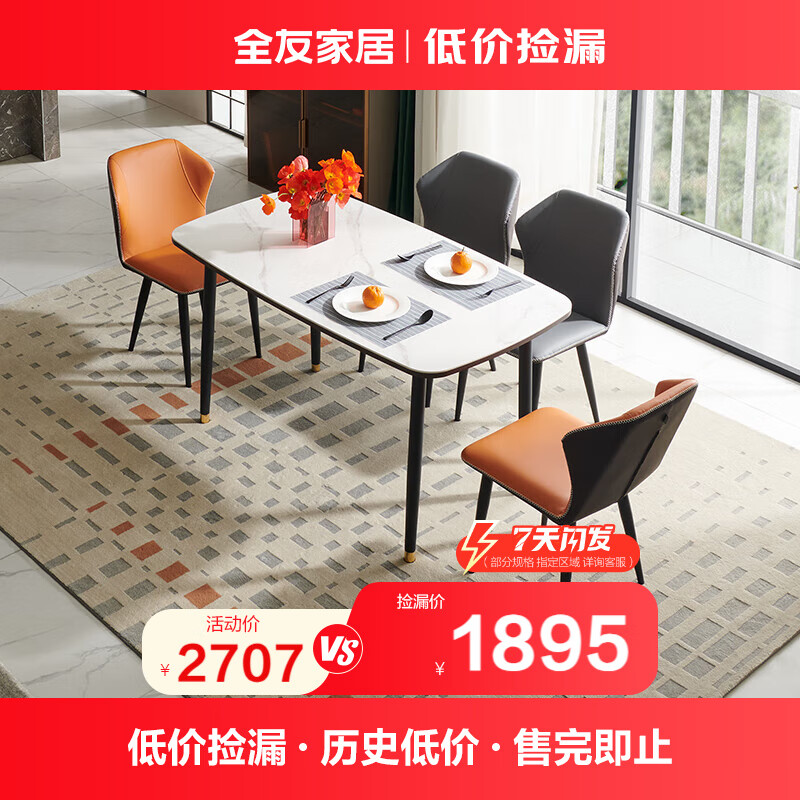 全友家居 可唯金岩板餐桌椅组合 意式轻奢金属框架国民家居桌子家具价格:2707.14元!