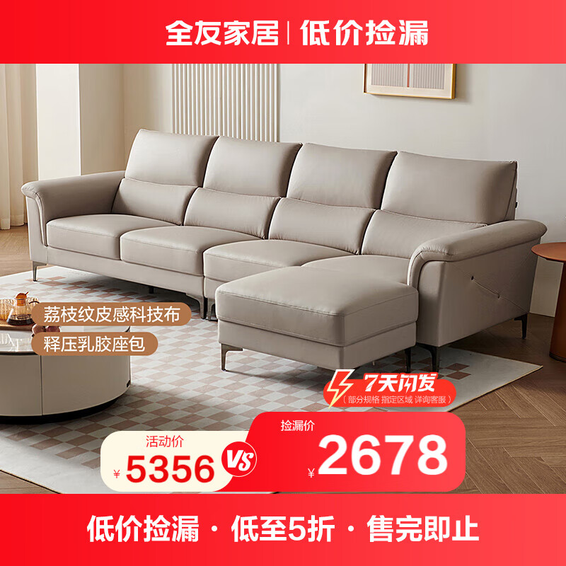 全友家居 现代简约科技布艺沙发客厅小户型直排家用四人位沙发102729价格:5356.00元!