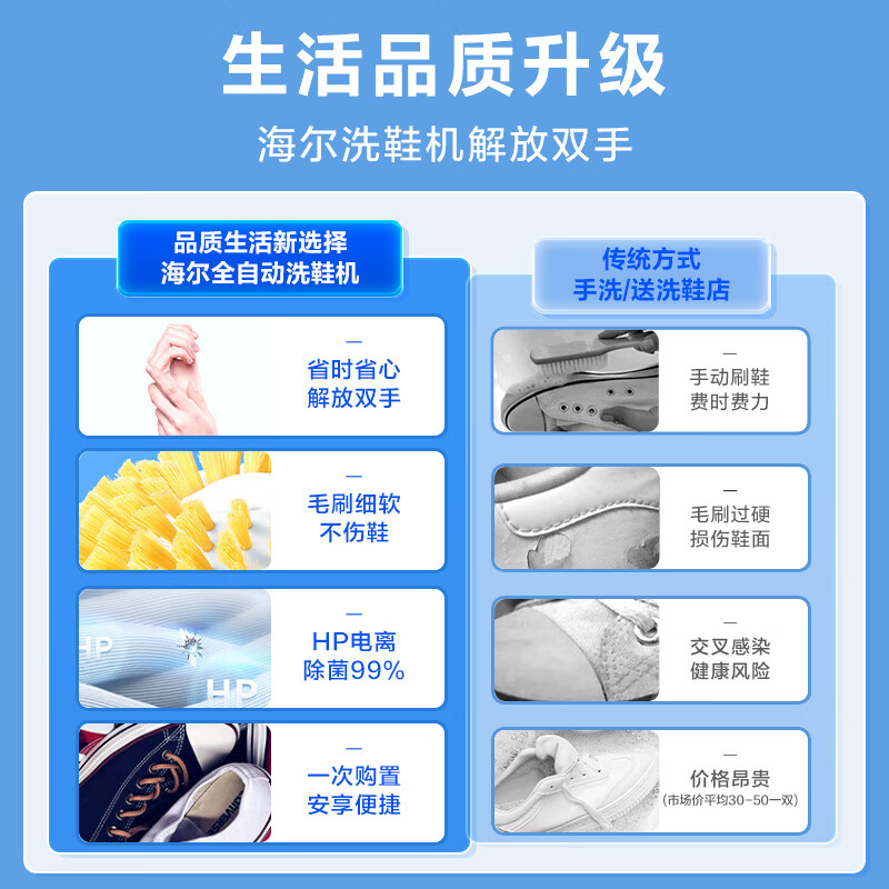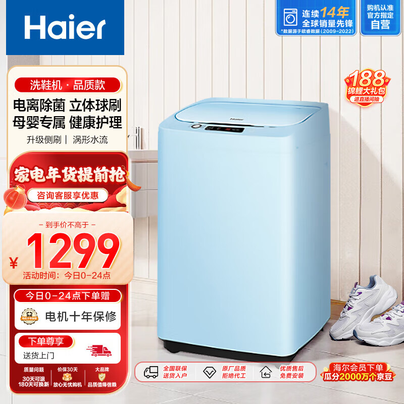 海尔(Haier)洗鞋机 刷鞋机波轮迷你全自动 洗鞋神器 迷你洗衣机 3.3KG 免拆鞋带 脱水HP除菌99% 侧刷T259价格:1199.00元!