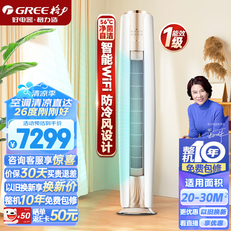 格力(GREE)空调立式 2匹 云焕 1级能效变频 独立除湿 客厅空调柜机KFR-50LW/NhDe1BAj价格:7299.00元!