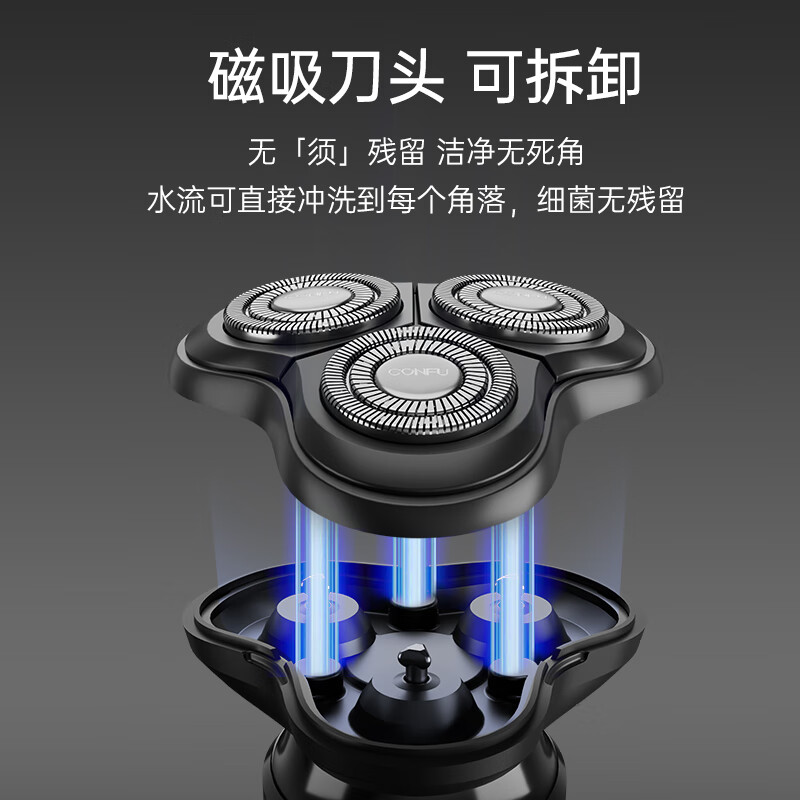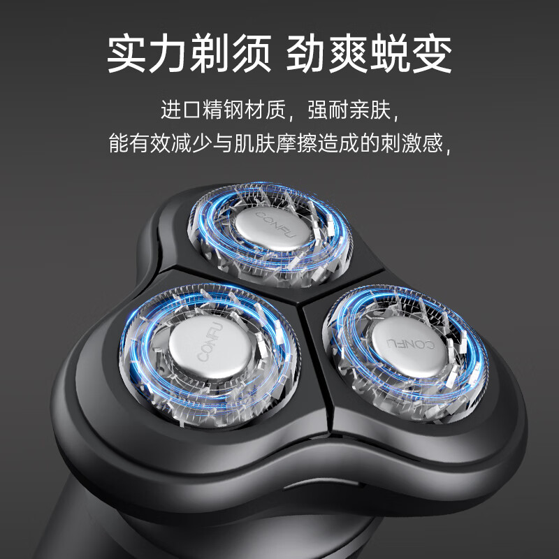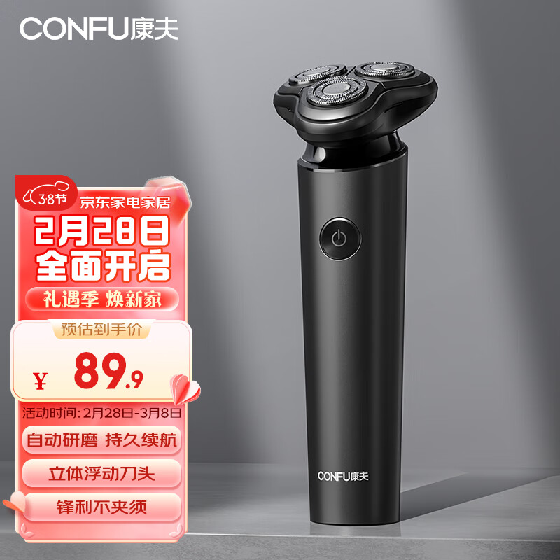 康夫(CONFU)剃须刀电动刮胡刀男士父亲生日礼物智能快充水洗干湿两用便携款迷你三刀头胡须刀KF-GC6价格:119.90元!