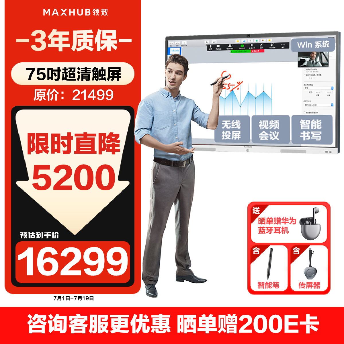 maxhub会议平板新锐Pro75英寸 触摸视频会议电视一体机 投屏电视智慧屏 SC75 i5+传屏+笔 企采商用显示价格:16299.00元!