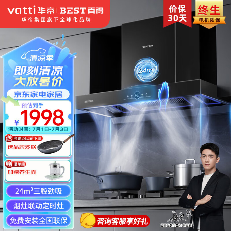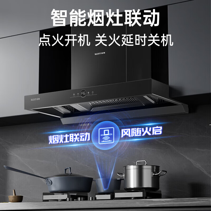 百得(BEST)华帝出品 欧式家用抽油烟机燃气灶具套装 烟灶联动24三腔大吸力挥手感应自动洗 E612+QE55(液化气)价格:2198.00元!