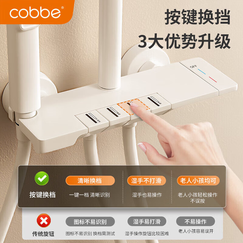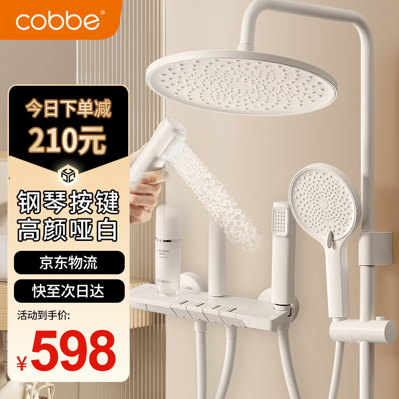 卡贝(cobbe)卫浴白色淋浴花洒套装浴室家用增压暗装沐浴器卫生间淋雨花晒喷头价格:658.00元!
