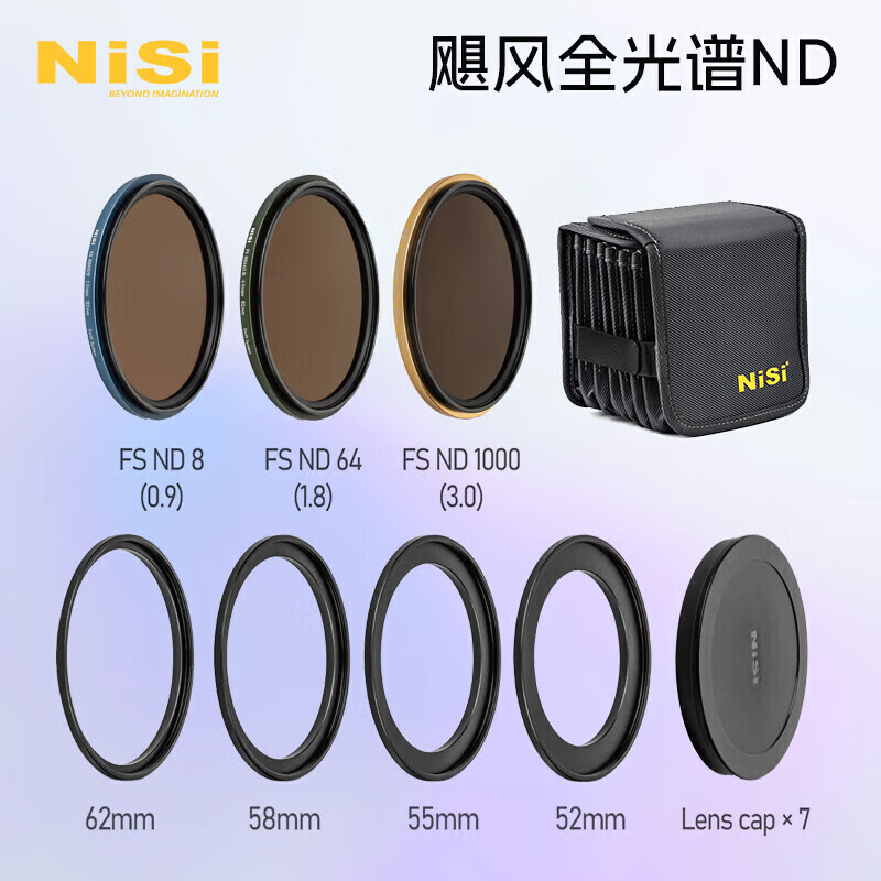 耐司(NiSi)飓风全光谱ND 62mm套装 4转接环(52+55+58+62) +ND8+64+1000+布包价格:950.00元!