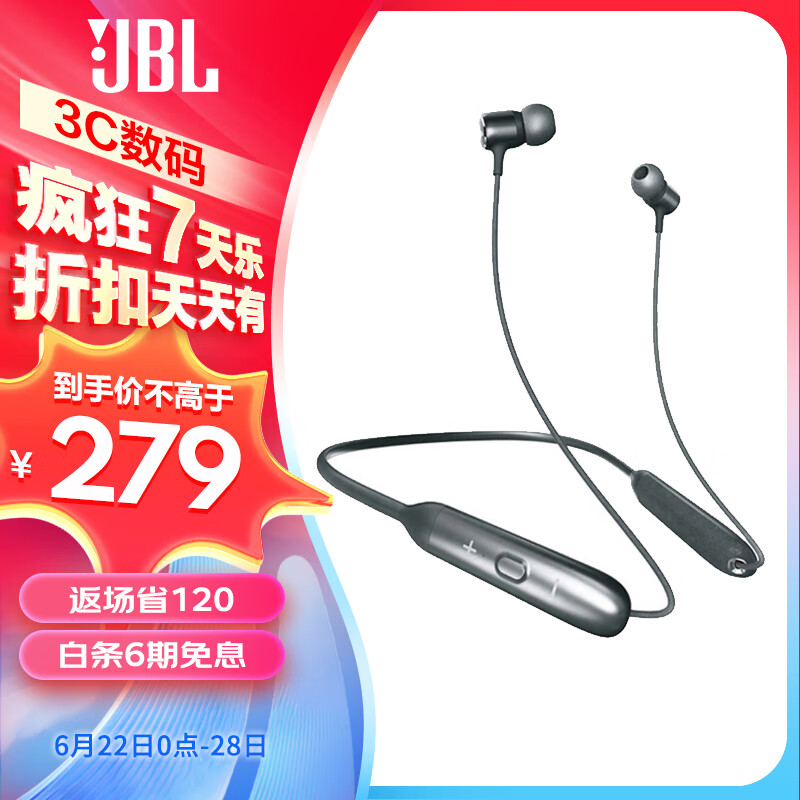JBL LIVE 220BT 颈挂式入耳式无线蓝牙智能耳机 音乐运动耳机 手机通用 磨砂黑价格:339.00元!