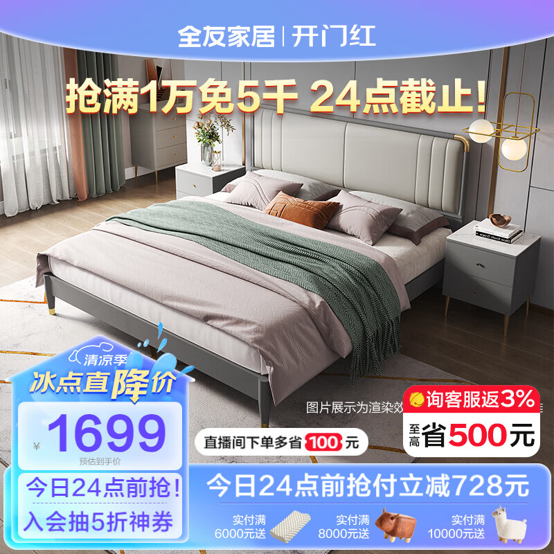 全友家居 床现代轻奢卧室双人床 实木框架带软包床屏框架床126901A价格:2427.14元!