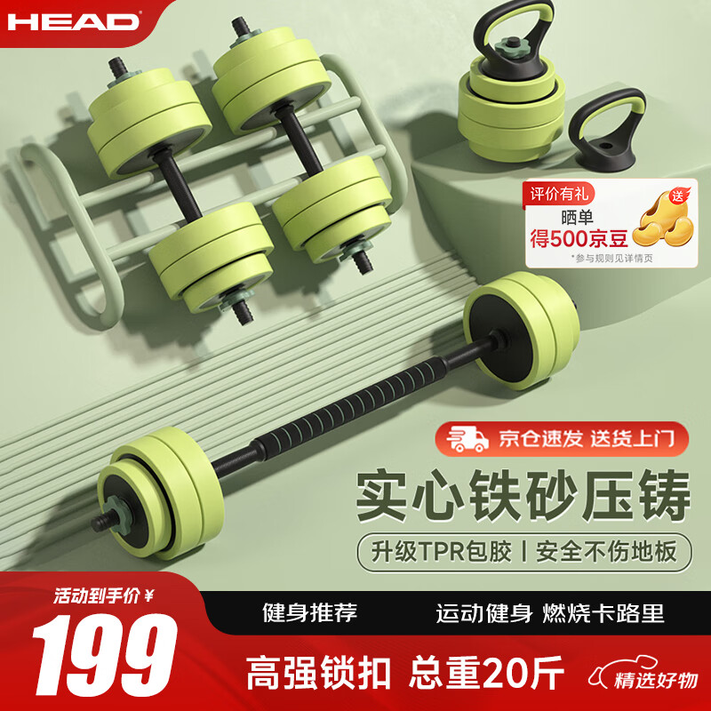 HEAD海德哑铃杠铃组合套装男女士通用壶铃可拆卸包胶10kg价格:199.00元!