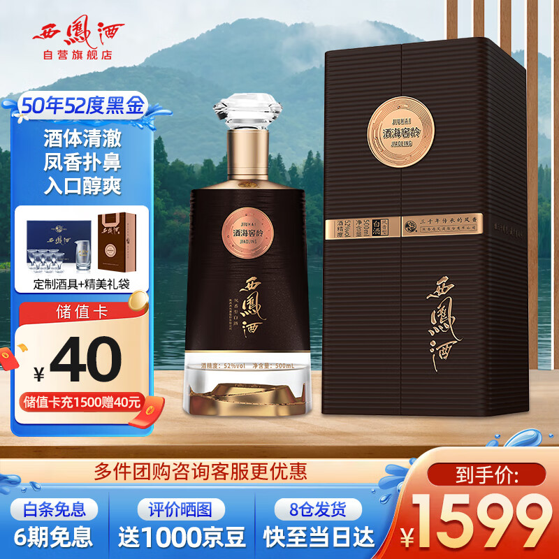 西凤酒 50年52度黑金纯粮凤香型白酒海窖龄婚庆喜宴请送礼盒装500mL*1价格:1519.00元!
