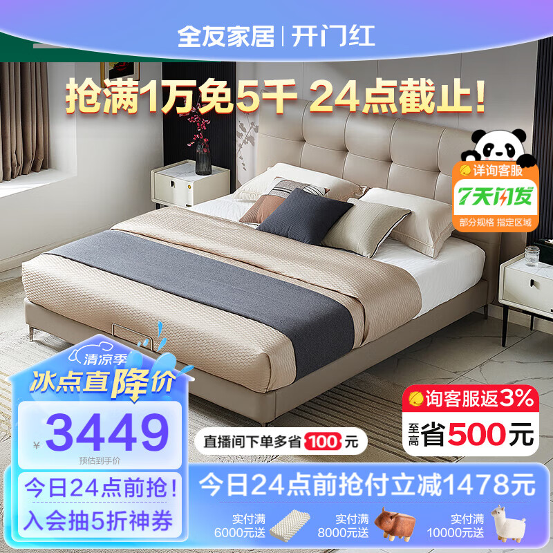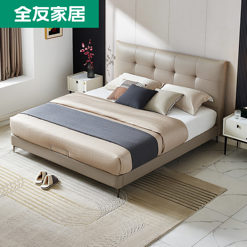 全友家居 皮艺床现代简约头层牛皮主卧室双人软包真皮床1.5x2米105308价格:4927.14元!