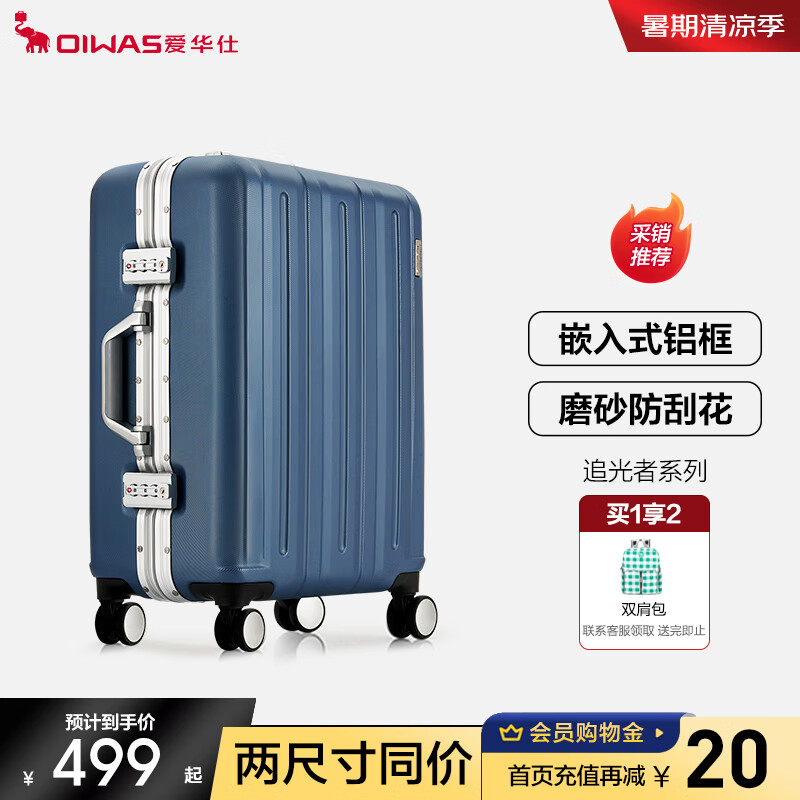 爱华仕行李箱铝框拉杆箱男万向轮旅行箱25英寸大容量女商务密码箱 蓝色价格:649.00元!