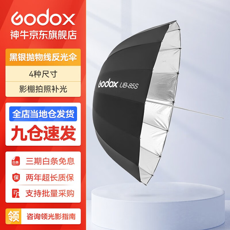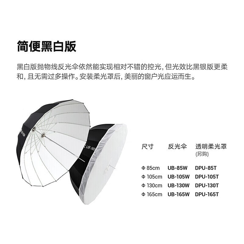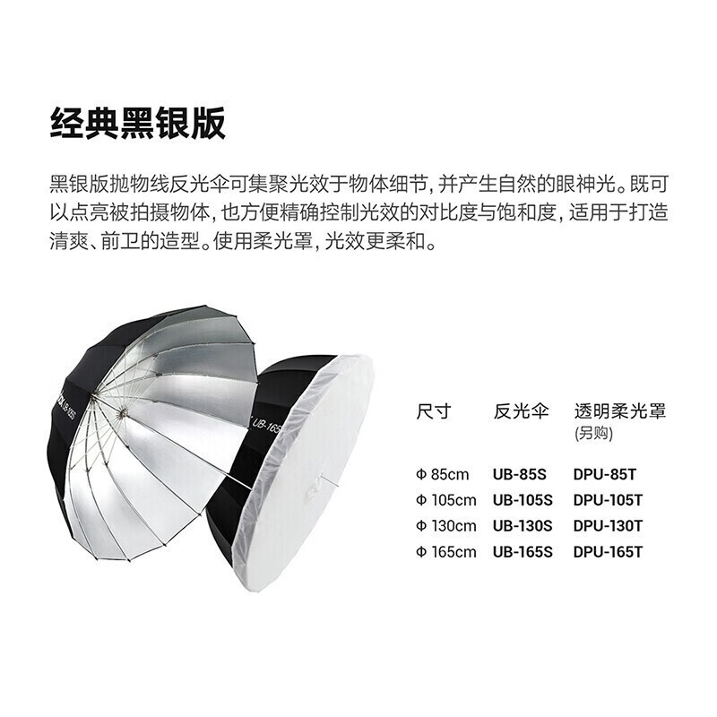 神牛(Godox) 抛物线反光伞大号摄影伞影棚拍照补光户外便携透明黑银白柔光伞柔光罩 黑银抛物线反光伞 105CM价格:199.00元!