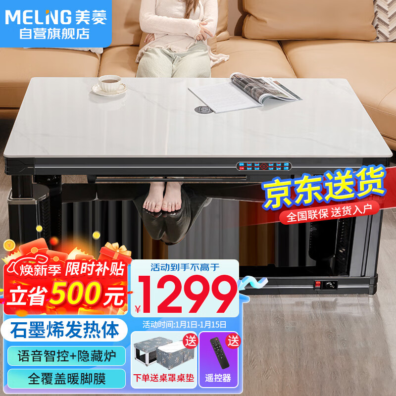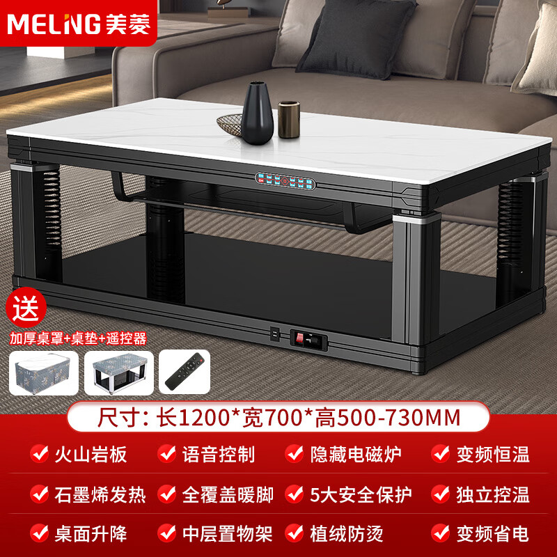 美菱电暖桌1.2米石墨烯发热长方形取暖桌多功能升降烤火茶几语音控制电暖炉家用餐桌烤火桌MDN-DA6502价格:1788.00元!