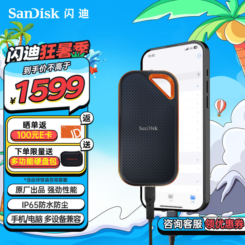 闪迪(SanDisk)2TB Nvme移动固态硬盘(PSSD)E81超极速Pro版SSD 读速2000MB/s 手机直连笔记本外接 三防保护价格:1599.00元!