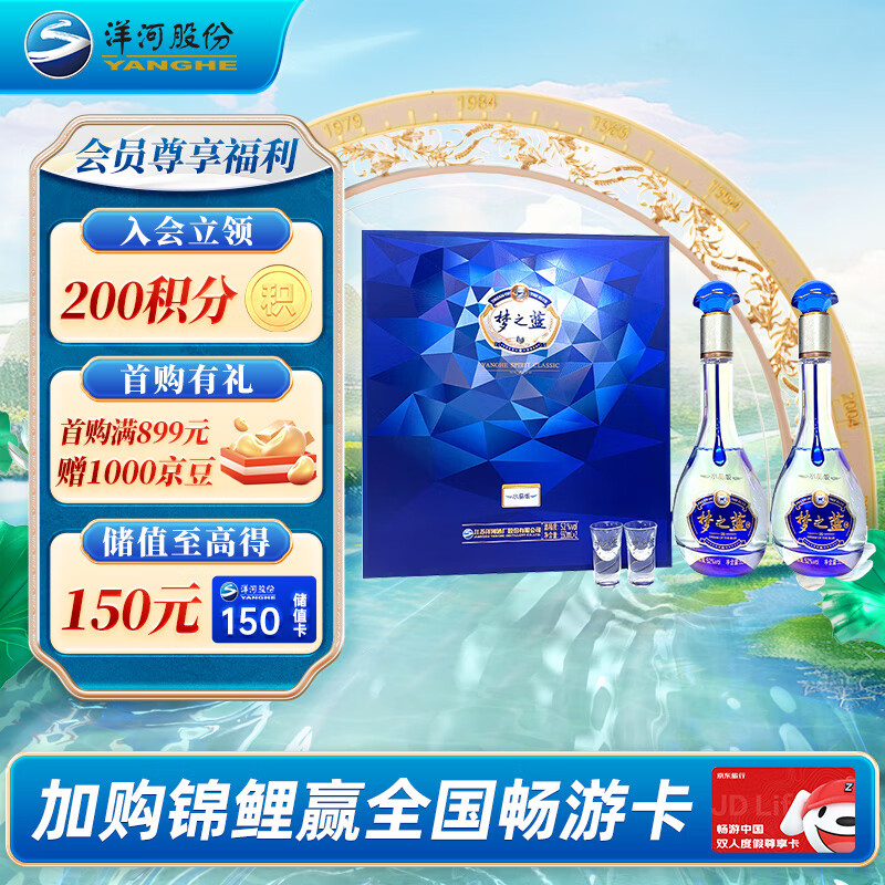 洋河 梦之蓝M3水晶版 52度 550ml*2瓶 礼盒装 绵柔浓香型白酒价格:1398.00元!