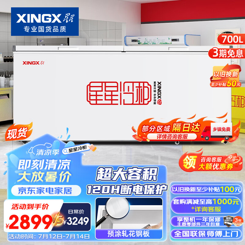 星星(XINGX) 700升 商用大容积卧式单温冰柜 冷藏冷冻转换冷柜 单箱变温冰箱 BD/BC-700R价格:2799.00元!