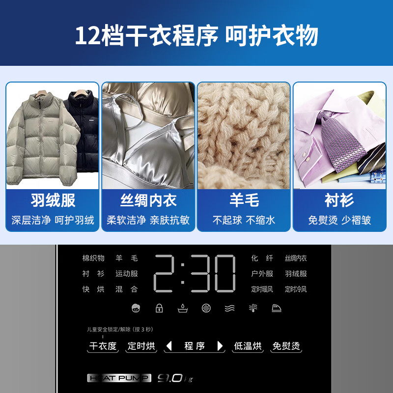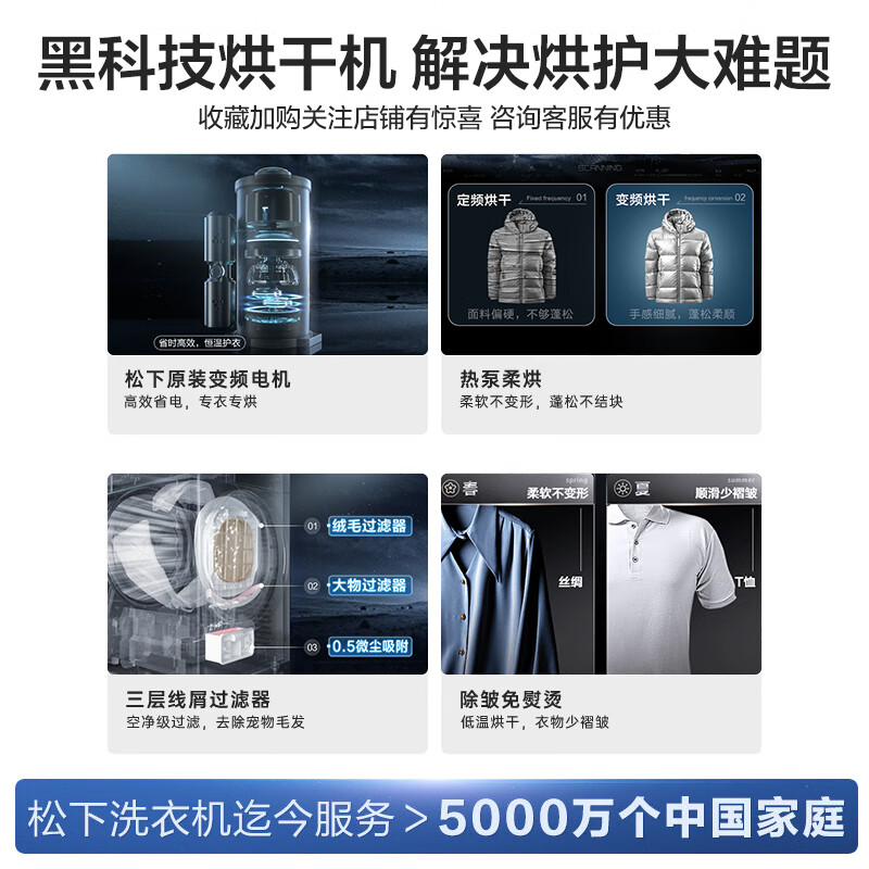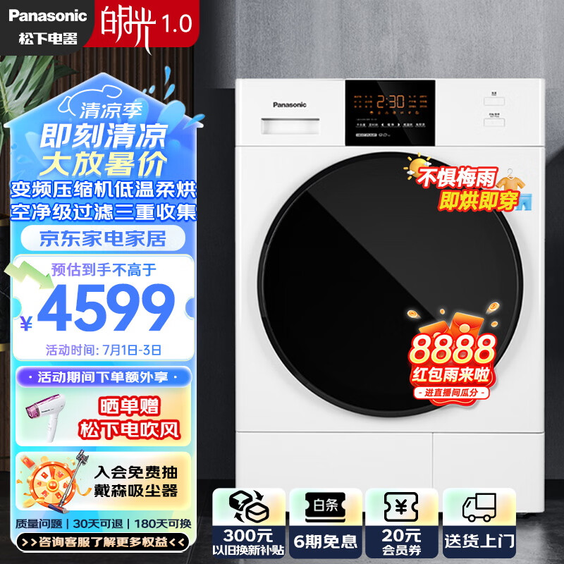 松下(Panasonic)白月光1.0 烘干机 9kg热泵烘干机家用 干衣机 双转子变频 线屑过滤 免熨烫 精准控温 NH-EH900W价格:4599.00元!