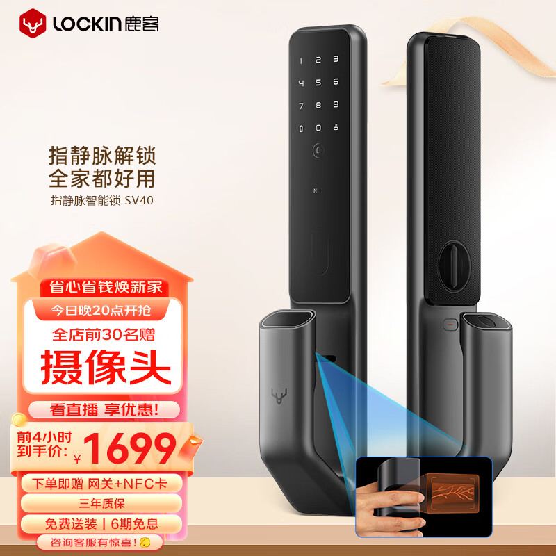 鹿客(lockin)SV40指静脉全自动智能门锁密码指纹锁电子锁支持APP智能联动价格:1999.00元!