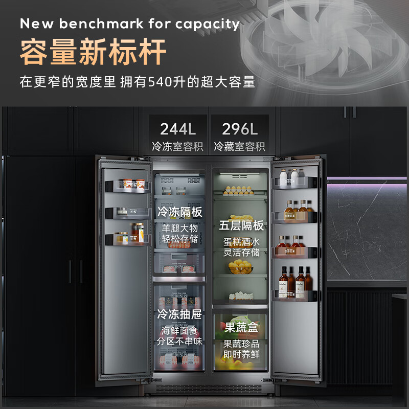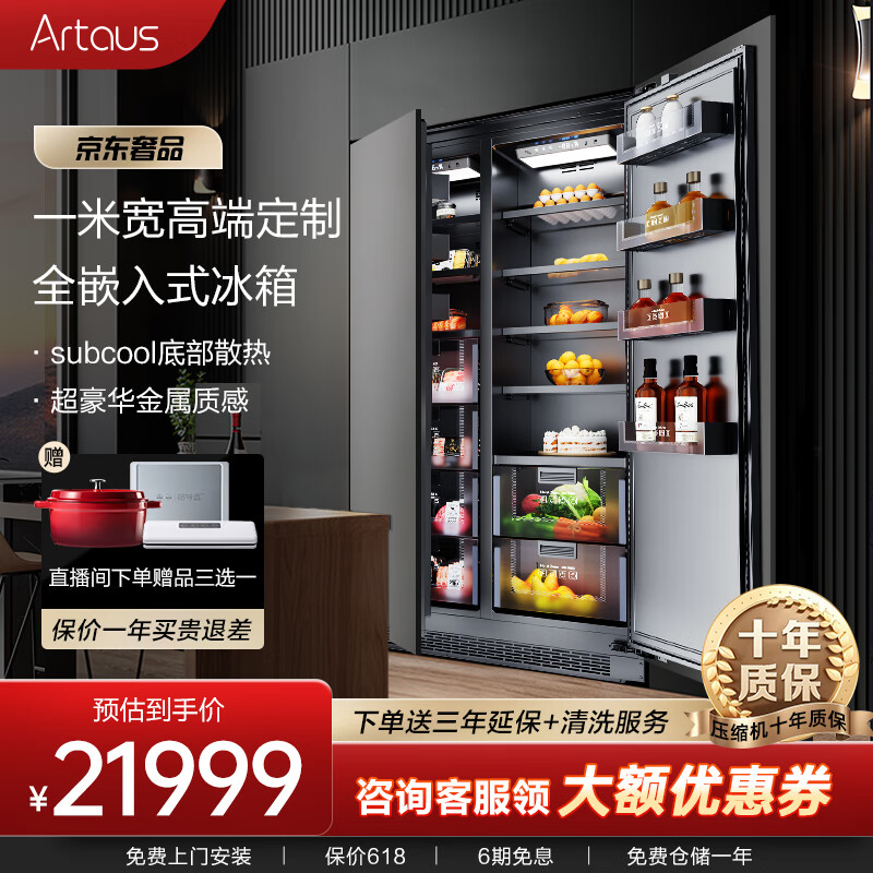 Artaus全嵌入式冰箱一米宽内嵌底散热超薄深57cm隐藏不锈钢内胆定制尺寸540升TK1026大灰鲸价格:21999.00元!