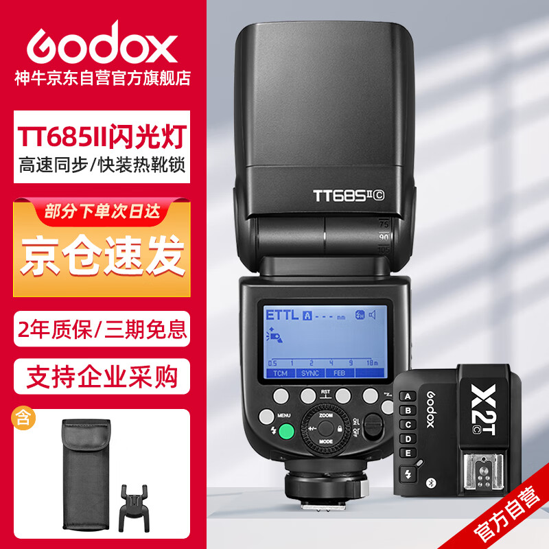 神牛TT685II二代升级机顶闪光灯高速同步TTL自动闪光便携口袋外拍热靴灯【TT685II+X2佳能版】价格:976.00元!
