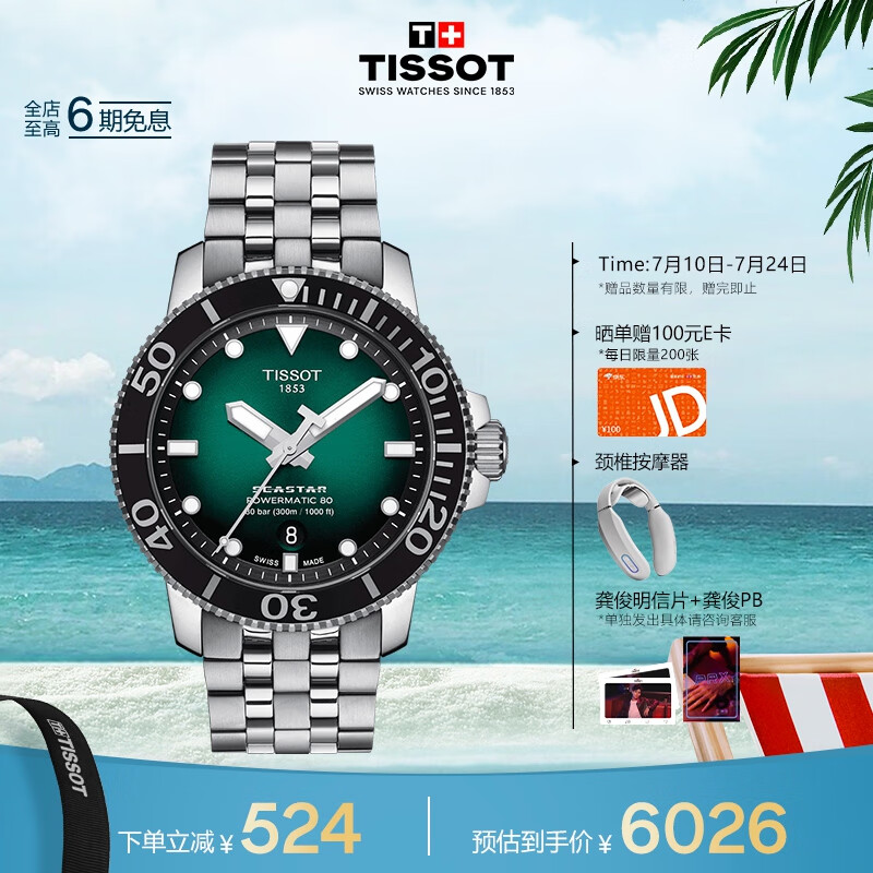 天梭(TISSOT)龚俊同款 海星系列腕表 钢带机械男表 T120.407.11.091.01价格:6550.00元!