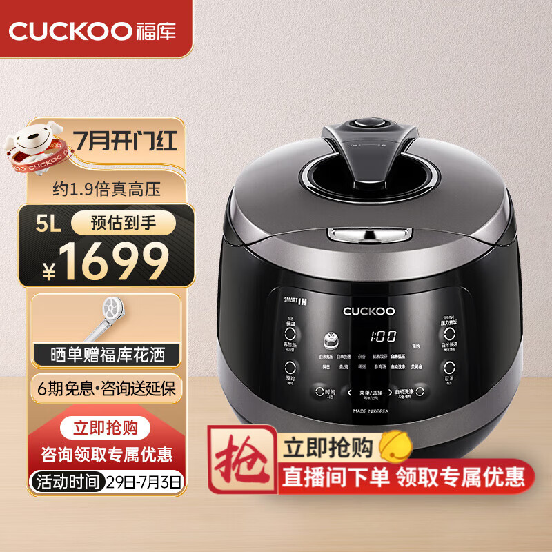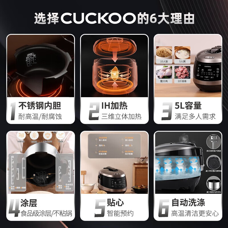 福库(CUCKOO)电饭煲韩国原装进口4-5人家用大容量电饭锅5升IH加热真高智能预约定时多功能不粘内胆电饭煲 上新CRP-HWS1091FD(2-10人) 5L价格:2599.00元!